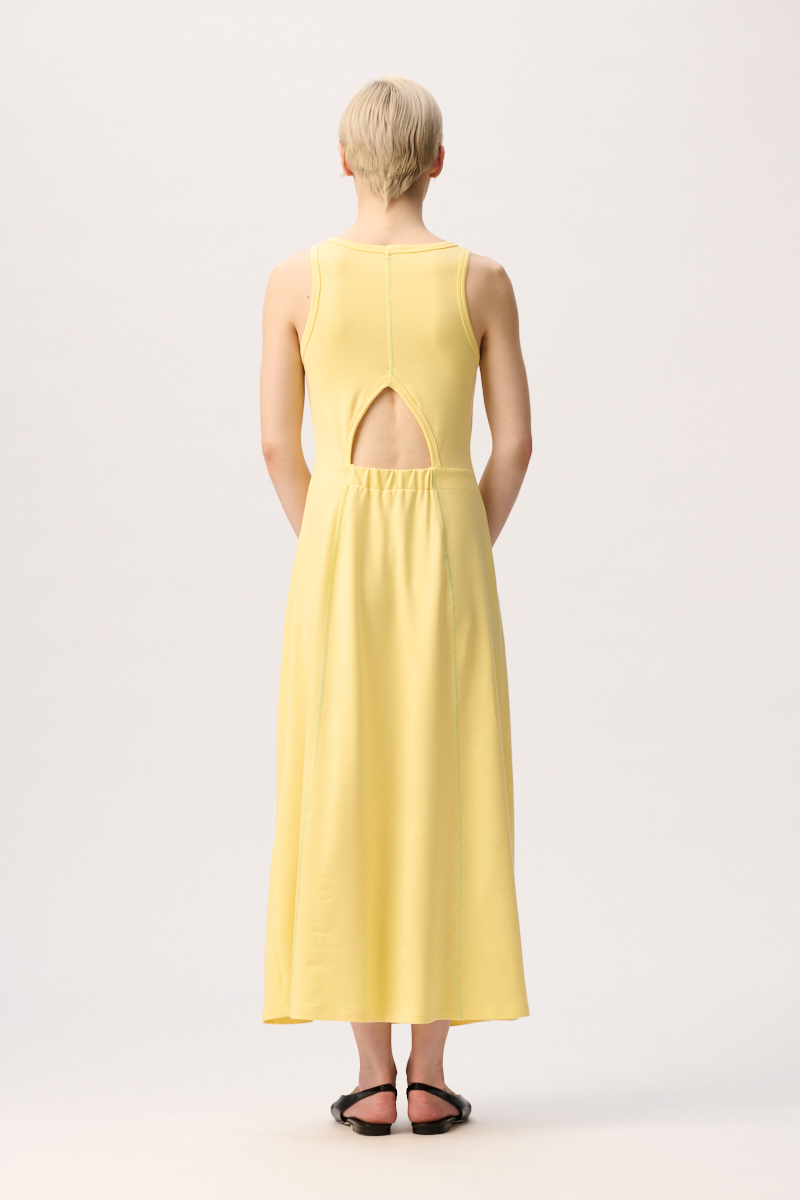 Hochwertiges, sehr weiches und schimmerndes Frauenkleid mit glänzenden Kontrastfarben in hellem Grün. Langes, schwingendes Damenkleid für den Sommer mit raffiniertem Cut Out und eingearbeitetem Gummi im Rücken sowie glänzenden Kontrastnähten in Orange. Die Qualität des Stoffes ist hochwertig und unkompliziert. Solltest du viel reisen, dann reicht, wenn du das Midikleid Silvie kurz aushängen lässt, nachdem du es aus dem Koffer genommen hast. Super praktisch und wunderschön.