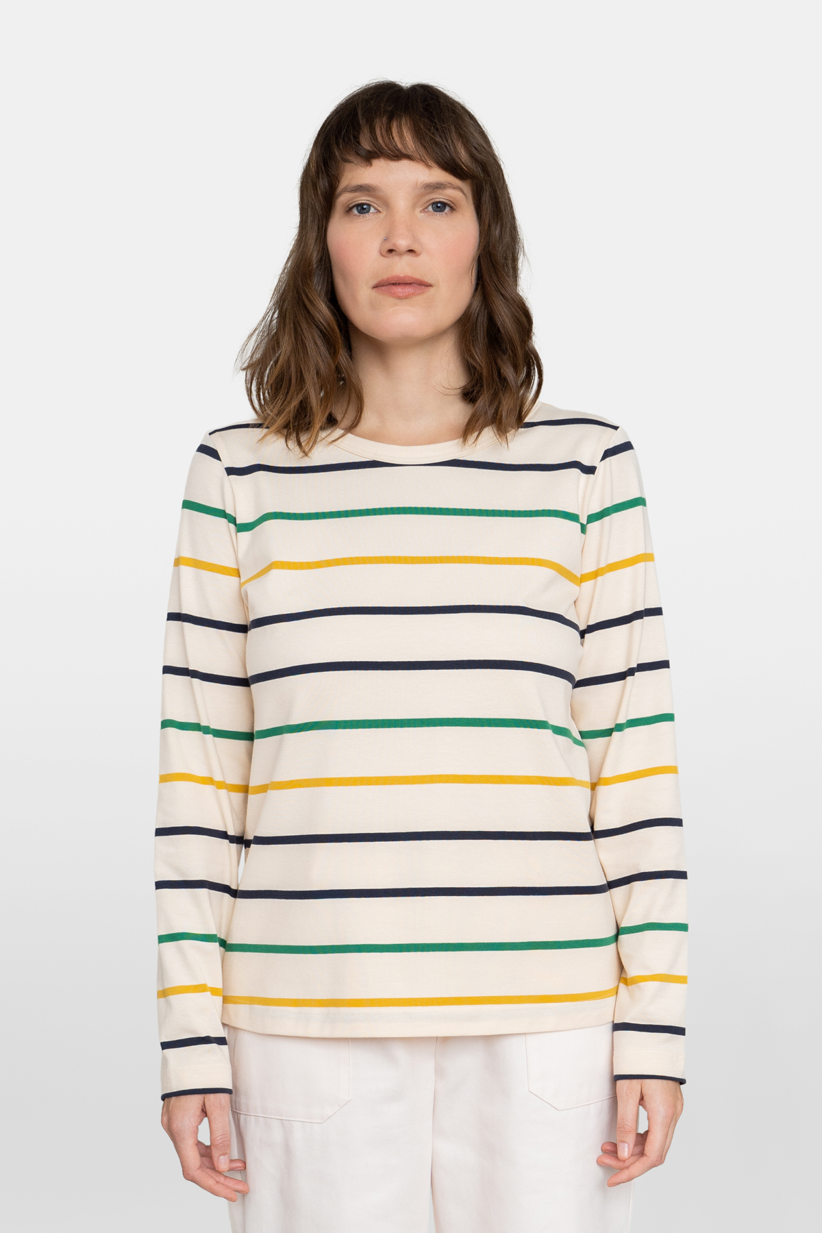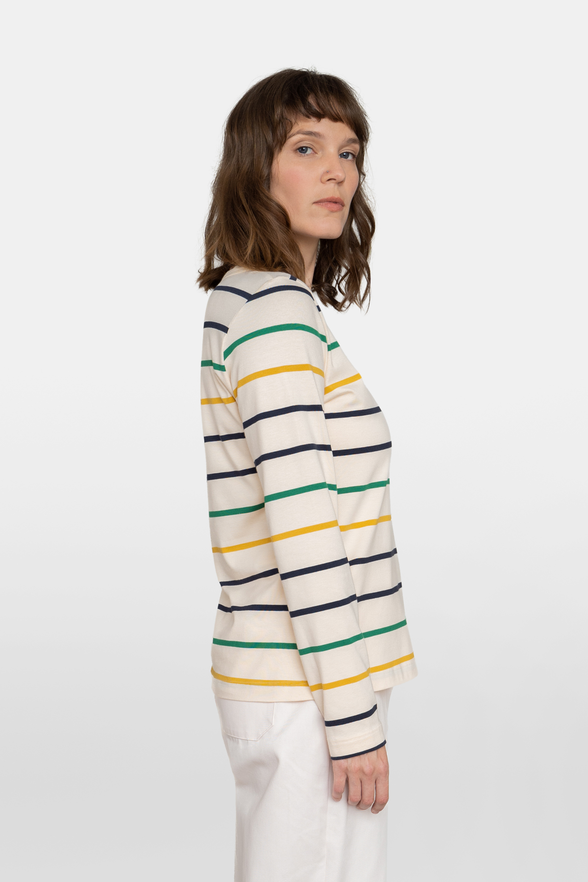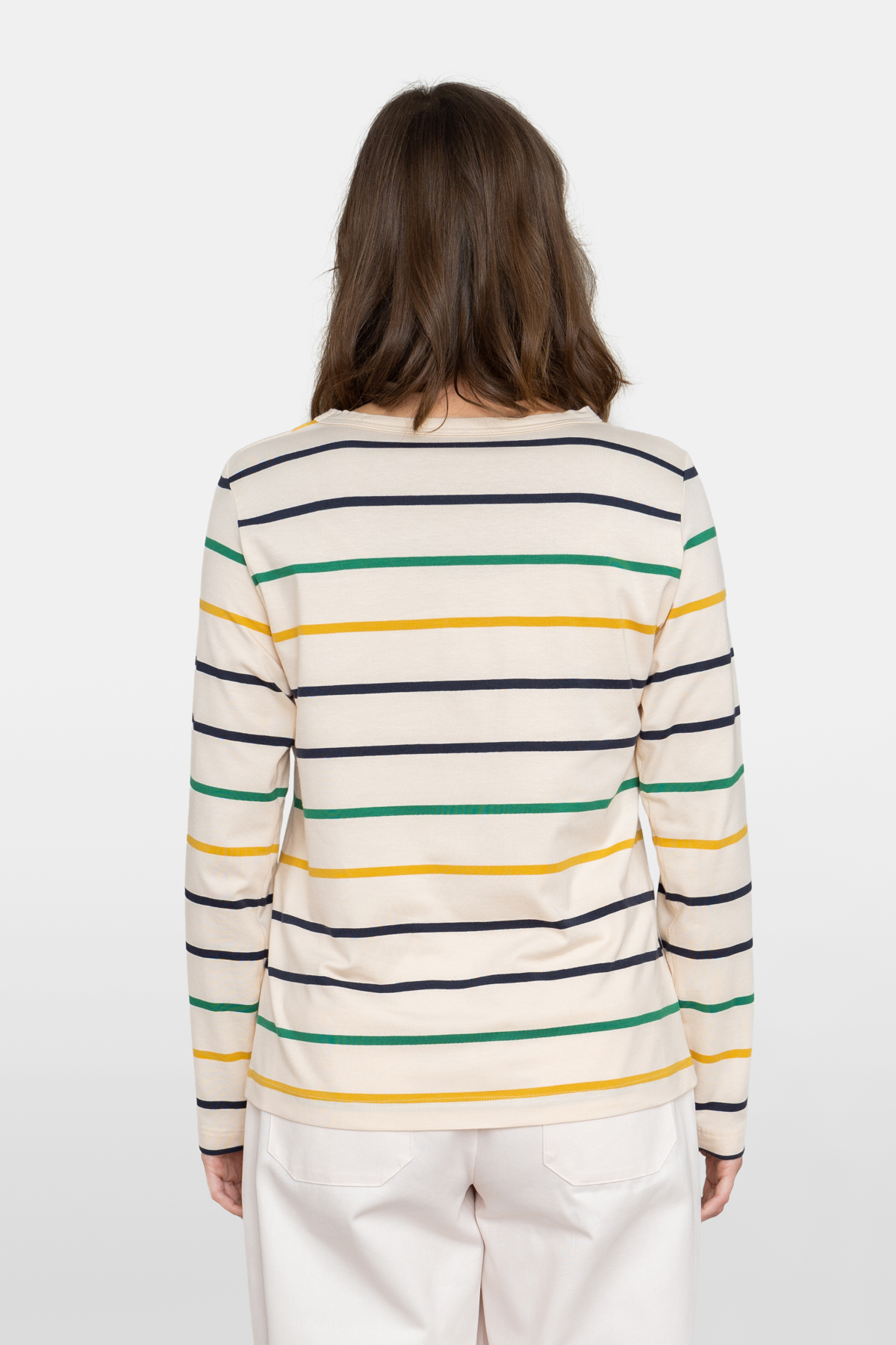 Langärmliges Oberteil mit lockerer Passform, sowie Rundhalsausschnitt mit Paspolbündchen. Aus einem sehr weichem und komfortablen Jersey.