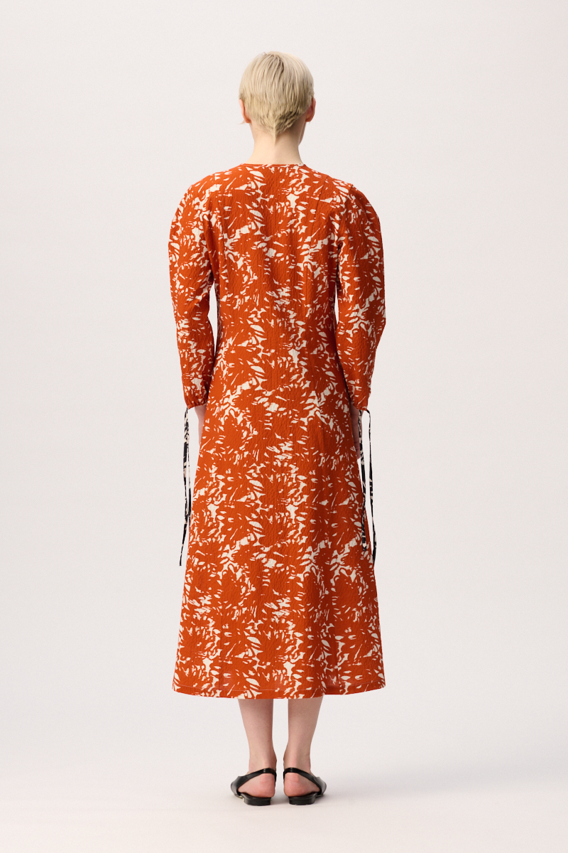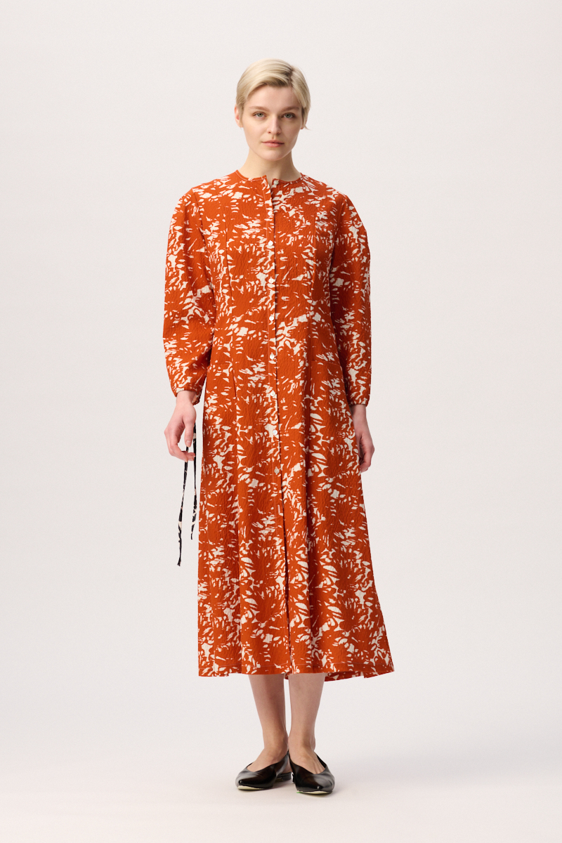 Leichtes, luftiges Midikleid aus zertifizierter Bio-Baumwolle mit Taschen. Mit konischen Ärmeln und Band in Kontrastfarbe zum Regulieren der Saumweite an den Ärmeln sowie der Position der verkürzt geschnittenen Ärmel. Die Qualität des Stoffes für das Frauenkleid ist hochwertig und unkompliziert. Ein Damenkleid, perfekt für alle, die viel reisen. Es genügt, wenn du das Kleid Sophie kurz aushängen lässt, nachdem du es aus dem Koffer genommen hast. Super praktisch und wunderschön.