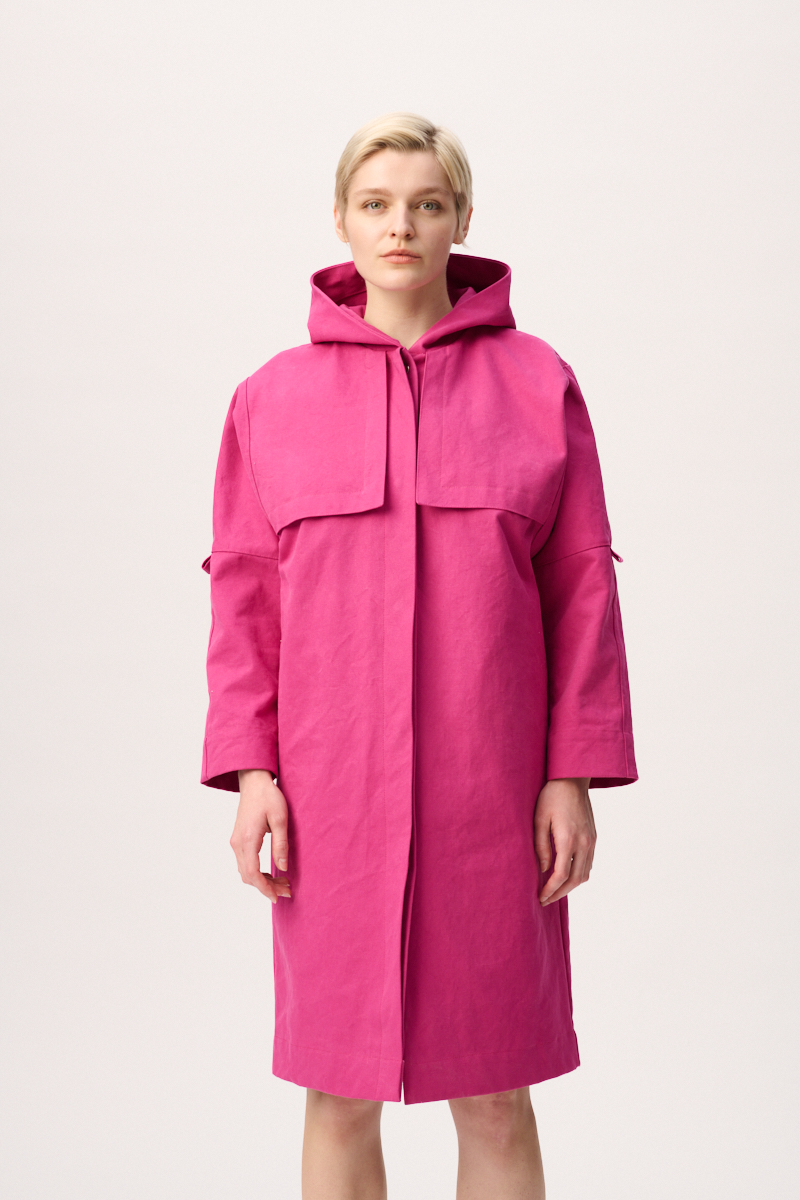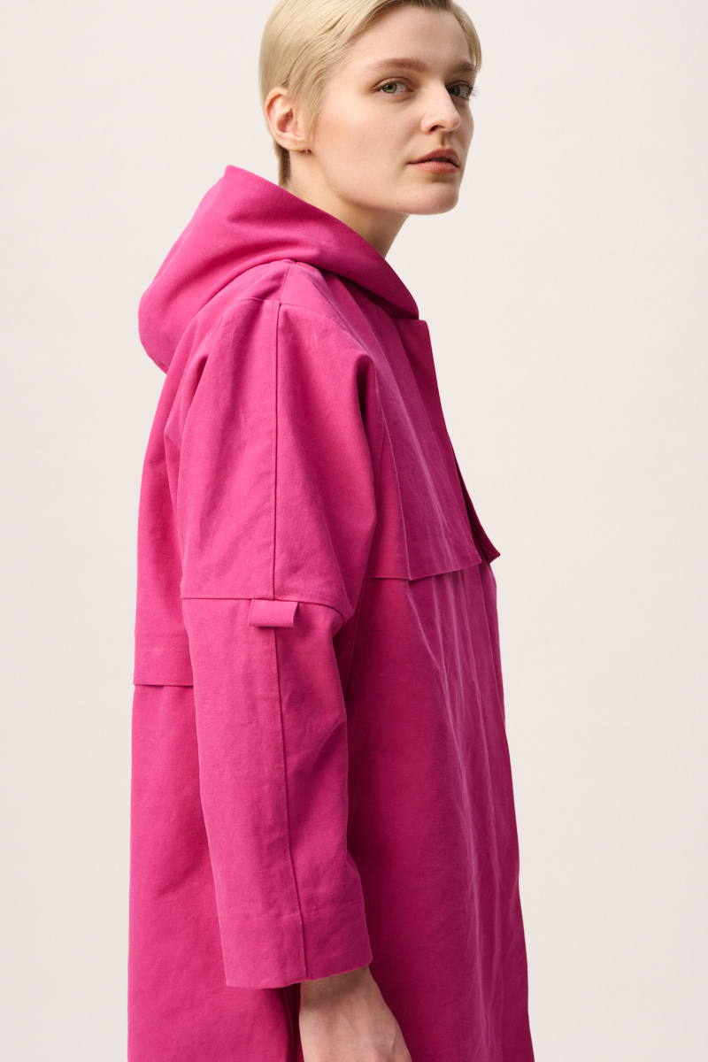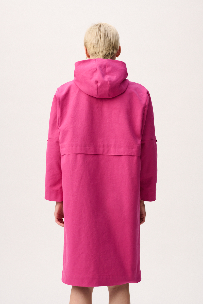 Der Parkamantel, mit grafischen Ziernähten aus einem robusten und zertifizierten Canvas-Baumstoff, schützt vor Spritzregen. Das griffige Material mit sandig-weicher Oberfläche sorgt für einen leichten Stand. Der Damenmantel ist der perfekte Begleiter für den Übergang. Ohne Futter, mit raffiniert eingearbeiteten Taschen seitlich, Kapuze und Paspelierung innen.
