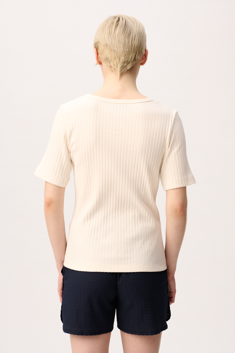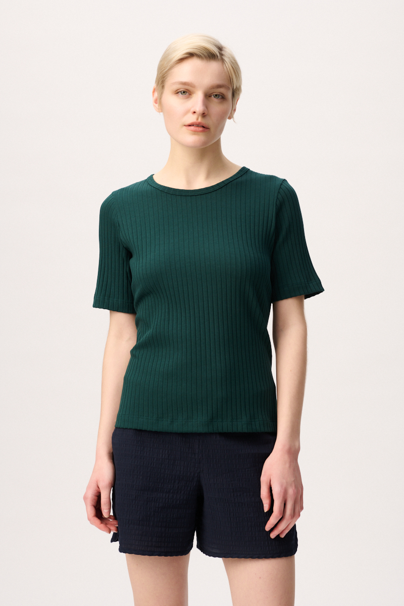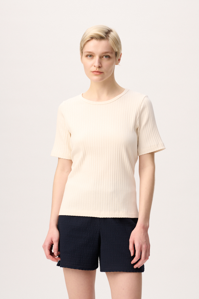 Hochwertiges Ripp-Shirt aus zertifizierter Bio-Baumwolle. Das Shirt ist eine etwas stabile Rippenqualität. Das Shirt hat eine etwas lockere Passform und sitzt nicht eng am Körper.