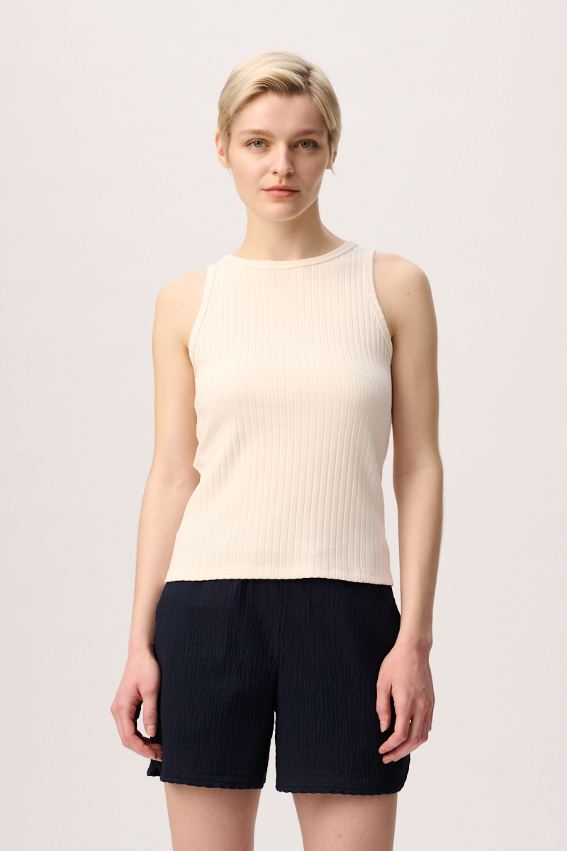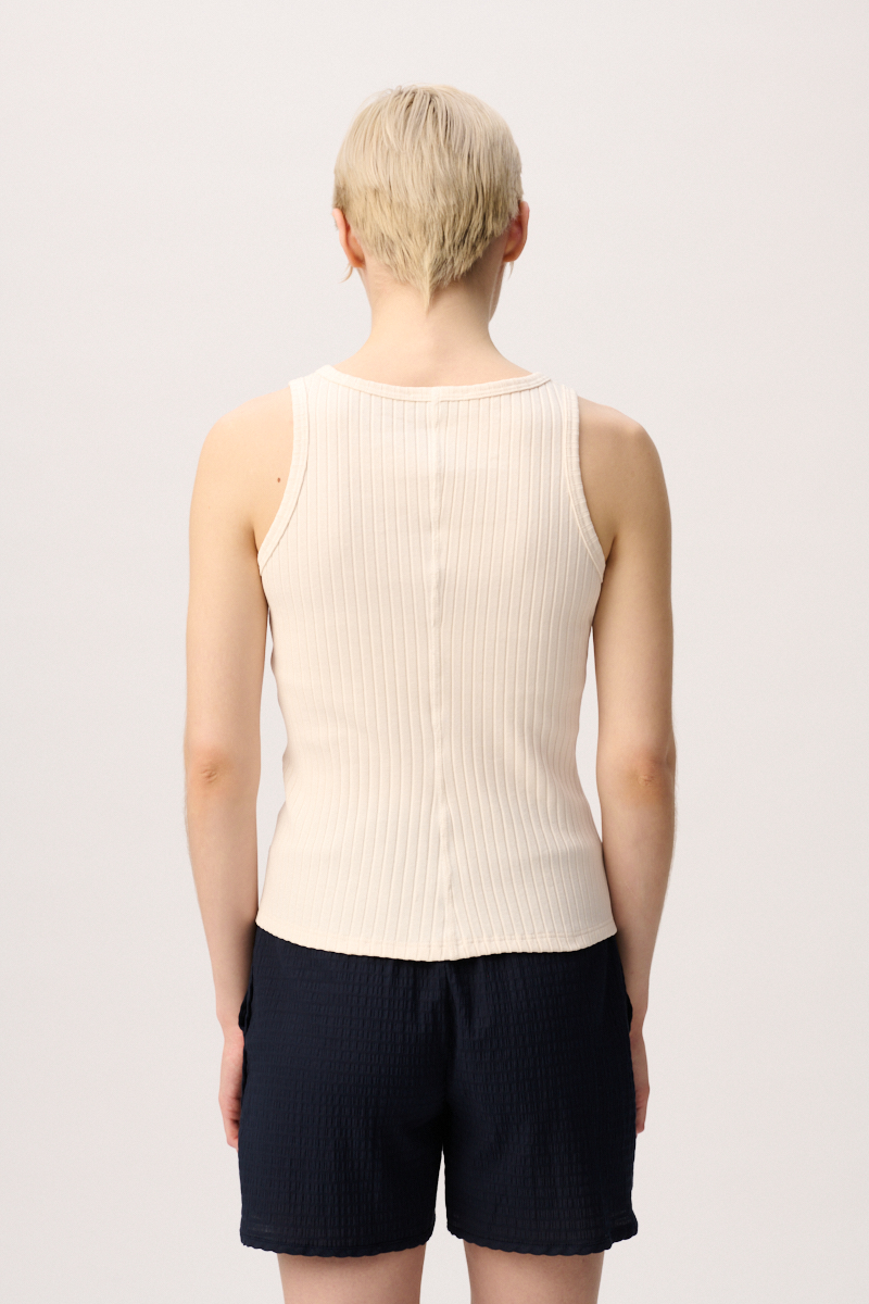 Hochwertiges Ripp-Top aus zertifizierter Bio-Baumwolle. Das Top ist eine stabile Rippenqualität. Alex, hat eine lockere Passform und sitzt nicht eng am Körper.